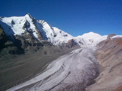 Die Pasterze beim Großglockner (links) ist die längste Gletscherzunge der Ostalpen. Sie reichte noch Anfang des 20. Jahrhunderts war das gesamte Tal ausgefüllt, doch aufgrund der wärmeren Perioden der letzten Jahrzehnte taute das ewige Eis um etliche Meter ab. Diese Schwankungen sind aber durchaus normal.